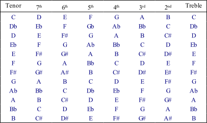 As there are twelve notes within an octave, it follows that a tenor bell may be described by any of twelve different keynotes. The following table shows the twelve possible combinations for an octave tuned in the major key.