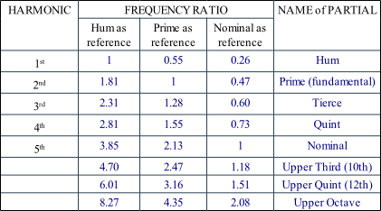 Partials of a typical 19th Century Bell